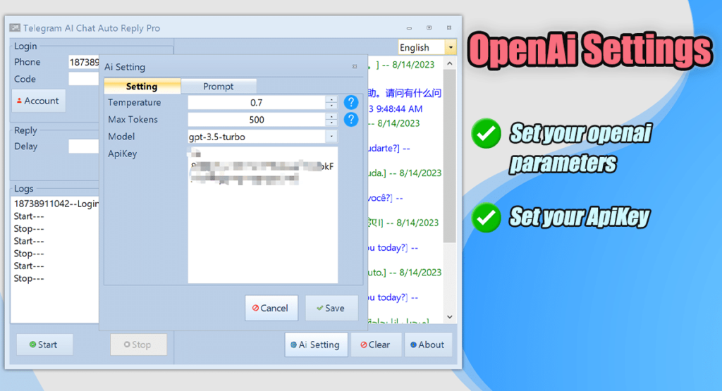 Yes, we have integrated OpenAI into our system. This allows you to set your own prompts and engage in automated conversations with your Telegram contacts.